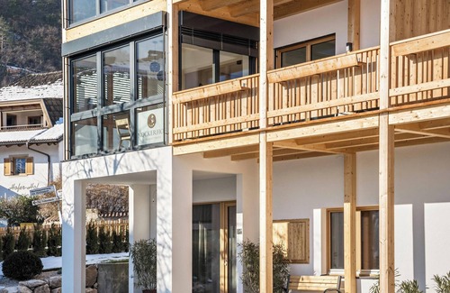 The bright vacation apartment in the South Tyrolean farm Nockerhof is situated in a sunny panoramic position at the foot of the Gantkofel and impresses with its comfortable furnishing in natural wooden construction. The bright and modern apartment has a living room with sofa bed for 2 persons, a well-equipped kitchen including a dishwasher, a bedroom as well as one bathroom and offers space for a total of 4 people. Additional amenities include Wi-Fi, air conditioning and a television. Enjoy the wonderful view over the Eschtal valley from the covered terrace, appropriate garden furniture is available. In the evening you can end the day with a glass of wine at the warm wood stove. The newly renovated Nockerhof is located in Andrian on the South Tyrolean Wine Road in the Eschtal Valley between Bolzano (Bozen) and Merano (Meran). Restaurants and cafes are within walking distance of 7-8 minutes (450-600 m), bars and other localities are about 5 minutes by car (2,5 km) away. A supermarket can be found directly on site in about 8 minutes (650 m), a local bakery can be reached in 6 minutes (3 km) by car. In only 20 minutes (22 km) by car you can reach the beautiful spa town of Merano (Meran) with its medieval old town. Also Bolzano (Bozen) with its many cultural sights is only 20 minutes by car (15 km) away.