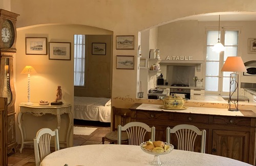 Large warm, clean, very spacious apartment, fully equipped, generously furnished with furniture combining historic charm and modernity. The family library alone is worth a visit. An EXCEPTIONAL French-style decorated ceiling that adorns all the upstairs bedrooms. On the ground floor, the swimming pool in the center of the courtyard of this former mansion, with its pretty flowers and its majestic palm tree, invites you to relax every day after unforgettable days of visits (Cité de Narbonne, Les Halles, Canals of Robine and Midi, Corbières wine route, Galamus gorges, Quéribus castle, Cucugnan ... breathtaking landscapes, coastal beaches of Gruissan Village and Chalets, Narbonne Plage etc). Located in the heart of the medieval city of Narbonne, a stone's throw from all the shops along the narrow, lively streets and the pretty Robine canal. No less than three chimes will remind you of the time of day.