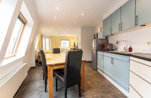 This stylish apartment is the perfect choice for a relaxing stay on the Belgian coast, offering a prime location just steps from the station, vibrant shopping streets, and the scenic promenade. Designed for comfort, it features cozy living spaces, two private balconies, and an inviting atmosphere. Small pets are welcome, making it ideal for those traveling with a furry companion. Whether you're looking for a peaceful retreat or an adventure-filled holiday, this apartment provides the perfect balance of relaxation and convenience. The surrounding area offers a wealth of attractions and activities for all ages. Blankenberge Beach is just a short stroll away, where you can unwind on the sandy shores or take a refreshing swim in the North Sea. The famous Blankenberge Pier provides breathtaking ocean views, while the nearby Sea Life aquarium is a must-visit for families. A variety of charming cafés, restaurants, and shops fill the lively city center, ensuring you always have something exciting to explore. Equipped with modern amenities, the apartment features free Wi-Fi, a digital TV with Telenet, and an open kitchen with all essentials, including a Nespresso machine, microwave, dishwasher, and a fridge-freezer. A washing machine offers added convenience, while elevator access ensures easy mobility. The two balconies, including a spacious roof terrace, provide the perfect spot to relax, making this apartment an excellent coastal getaway.