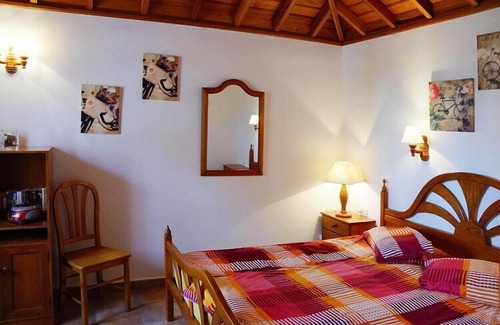 The houses, built in the typical Canarian style, are spread over an 11,000 square meter garden plot with extraordinary palm trees, exotic plants, flowers and a wide variety of ornamental and fruit trees. From the various terraces you have a wonderful panoramic view of the mountains and partly of the sea. The facility, which is lovingly run by a German family, is located in a quiet, fantastic location on a slope at an altitude of 450 meters between El Paso and Los Llanos on the west side of the island. The system is therefore in the sun-favored region of La Palma. Highlights! Extras included: Usage-based energy costs, bed linen, towels, heating: e-radiator, final cleaning and daily cleaning (except for holidays and weekends) Cat. A rental car from/to the airport, WiFi Activities nearby: La Palma is considered the island of the Canary Islands with the most vegetation . The beauty of the island is characterized by great, diverse landscapes, which are particularly popular with hikers and nature lovers. Banana plantations, vineyards, deep-cut gorges in the north, volcanic craters in the south and the "Caldera de Taburiente" national park await you. New: Cleaning service every 2 days except Saturday, Sunday and holidays. Bed linen change 1x a week, towel change as required by customers (if new ones desired, throw the old ones on the floor). ATTENTION: Car rental between 15.11.2023 and 01.03.2024 unfortunately not available