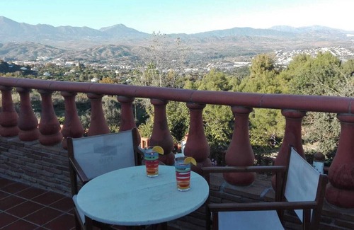 Apt. On 1st floor of Andalusian house in beautiful rural property, 20Km from the Costa de Sol and Malaga. 30min from Caminito del Rey. It consists of lounge-kitchen (fully equipped), 2 attic bedrooms with large closets and desks, private terrace with wonderful views, equipped with table, chairs and barbecue.