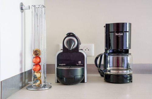 A spacious, well-equipped kitchen with filter coffee maker and Nespresso machine, kettle, toaster, dishwasher, microwave, electric oven and induction hobs, washing machine with drying rack. You can have lunch in the kitchen or in the living room.