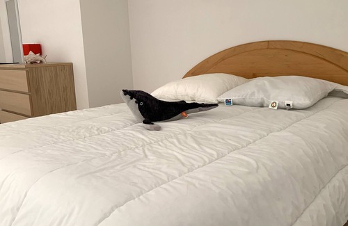 Prepare a home-cooked meal in the kitchen, complete with an oven, a stovetop, and a refrigerator, as well as a coffee maker, an electric kettle, and a microwave. Bathroom amenities include a hair dryer and towels. And because there's a washing machine, you can go a bit lighter on your packing.