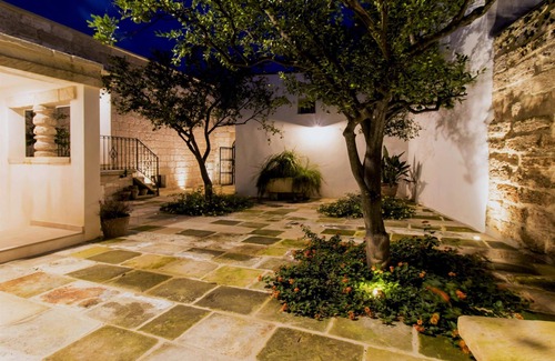 The beautiful 75 m² apartment 'Oikia Giuggianello Le Bey Elsa' in a unique historic residential complex is located in the town center of Giuggianello in Puglia, at the heel of the Italian "boot". Puglia is known for its hill towns with whitewashed houses and miles of Mediterranean beaches. The modernly furnished apartment consists of a cozy living/dining area with a well-equipped kitchen and dining area, a bedroom as well as a bathroom with shower and can accommodate 4 people. Living and sleeping areas are separated by a handcrafted wall in glass and iron. Additional amenities include Wi-Fi, air conditioning, a washing machine, a dryer and cable TV. In addition, the apartment offers a communal outdoor area with a spacious courtyard and an outdoor shower. Here you can start an eventful vacation day relaxed with a cup of coffee or tea. Due to the central location, restaurants, bars and cafes are only 1-5 minutes on foot away (50-350 m) and the nearest supermarket is just around the corner (5-minute walk). The beach at Spiaggia di Baia dell'Orte is about 24 minutes away by car (18 km). Giuggianello is 34 kilometers southeast of Lecce (25 minutes by car), famous for its Baroque architecture, and only an hour's drive from Brindisi airport (87 km).