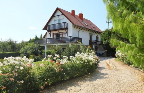 Felsőörs 12 km from Balatonfüred: Modern, beautiful country house "Rosa", built in 2003. On the outskirts, in a quiet position on a slope, 3 km from the lake, 5 km from the beach. For shared use: garden 1'500 m2 (fenced). Barbecue, fireplace. In the house: WiFi, air conditioning, washing machine. Grocery 850 m, restaurant 650 m, bakery 750 m, bicycle rental 1 km, railway station 5 km, grass beach 5 km, thermal baths "Hévíz" 81 km. Marina 5 km, riding stable 750 m, cycle lane 5 km. Nearby attractions: Balatonfüred 11 km, Tihany 16 km, Veszprém Zoo 11 km, BalatonBob Theme Park 4 km, Annagora Aquapark 11 km, Balaton Golf Club 18 km.