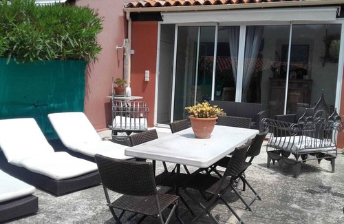 Apartment type maisonette independent in condominium quiet and secured by digicode with private parking and pool. The local is an apartment in Rez garden type house (individual person above) with a fenced garden and terrace equipped with deckchairs and a gate on the side (to store bicycles, kayaks and scooters) from the pleasant sea view terrace. At the foot of the Estérel mountain and close to the beach and the port of Figueirette.