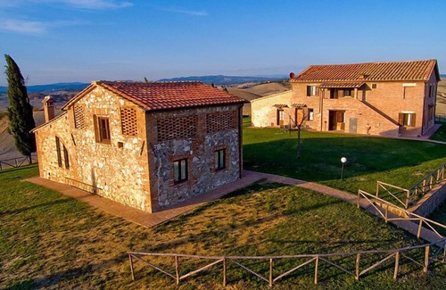 It is a former Tuscan farmhouse with 7 apartments, which belongs to an organic working farm in the middle of the typical hilly countryside of the Crete Senesi. Each appartment has got own garden equipment. Restaurant to 3km old farmhouse "Staffolino", renovated, surrounded by fields. 15 km from the centre of Siena, 80 km from the centre of Firenze, 40 km from the centre of Montalcino, in a quiet position on top of a hill. For shared use: property, swimming pool (7 x 14 m, depth 100 - 150 cm, seasonal availability: 01.Jun. - 28.Sep.). Garden furniture, barbecue. In the house: central heating system, heating available only from 01.Nov. - 15.Apr.. Motor access (1 km via unmade road). Parking on the premises. Grocery 4 km, supermarket 4 km, shopping centre 15 km, restaurant 4 km, bus stop 4 km, railway station "Arbia" 4 km, thermal baths "Rapolano Terme" 15 km. Golf course (18 hole) 25 km, tennis 15 km, riding stable 16 km. Nearby attractions: Crete Senesi (Biancane di Leonina) 2 km, Site Transitoire Leonina 4 km, Abbazia Monte Oliveto 25 km, Parco Naturale Val d'Orcia 50 km. Please note: car recommended. The photograph shows a typical example.