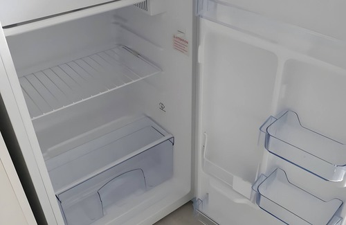 The fully equipped private kitchen includes two induction hobs, a microwave, a refrigerator with freezer compartment, a coffee maker, a kettle, a toaster, and everything you need to prepare your meals.