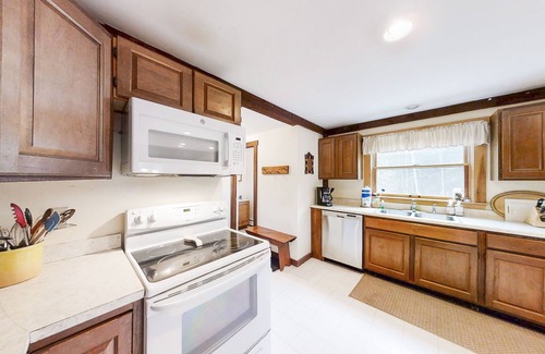 Set on the Linekin Bay waterfront, this 3BR/1.5BA cottage is just steps from the water! Set off on a paddling adventure with the provided kayaks and canoe.