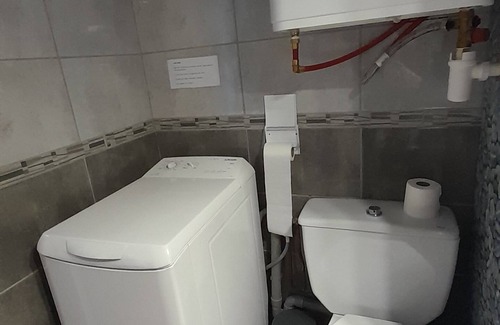 The kitchenette is equipped with an oven, a stovetop, and a refrigerator, as well as a coffee maker, an electric kettle, and a microwave. Enjoy the TV and DVD player. And there's access to laundry facilities, so you can even pack a bit lighter. Other amenities at this 1-bedroom, 1-bathroom rental include a desk, an ironing board, heating, and a dining table.