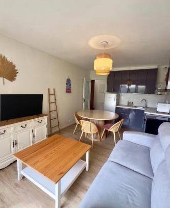 Appartement 1 chambre pour 2 pers - rénové - terrasse is located in La Celle-sous-Gouzon, just 27 miles from Dryades Golf and 29 miles from Casino de Néris-les-Bains. The property is around 24 miles from Athanor Centre de Congrès, a 2-minute walk from National Golf, and 27 miles from Sainte-Agathe Golf Course. The apartment is composed of 1 bedroom, a fully equipped kitchen, and 1 bathroom. A flat-screen TV is offered. The accommodation is non-smoking. Clermont-Ferrand Auvergne Airport is 74 miles from the property.