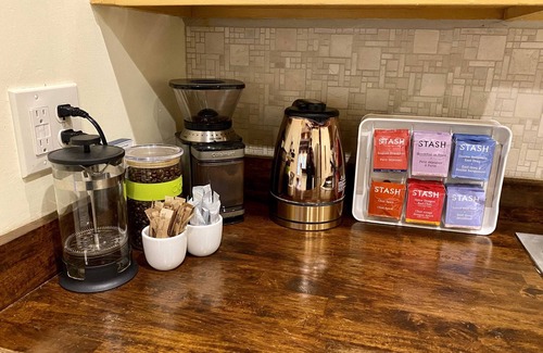 If you are in the mood for something more relaxed, the church around the corner has a beautiful public stone meditation path. Rushton Park, one of the three parks lining Highland Avenue, is just a couple of blocks away. A favorite among locals, it's a wonderful place to enjoy a pretty day. If you are traveling with kids, you will love Rushton Park's gated playground. Or, if you are in for something more active, try the park's basketball or volleyball court. Just outside the park, you will find a few popular local eateries. In the mood for a coffee or pastries, try O'Henry's. Or, stroll next door to Rojo, a popular Mexican restaurant with indoor and outdoor dining. It's dog friendly and regularly features live music and entertainment.