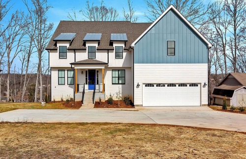 Experience Tims Ford like a local in this 8-bedroom house. With 4 queen beds, 2 king beds, and 2 bunk beds, our property is perfect for large groups or families. You'll find everything you need for a brilliant stay, including WiFi, a washing machine, AC, and heating. The 6 bathrooms, complete with a bathtub, tile showers to ensure that everyone has their own space. Relax in the hot tub or have dinner out on the deck viewing the best views of Tims ford. Host your whole family in our large kitchen/living floorspace with windows all around to capture the lake vibe. Kids can enjoy our game room with ping pong and more. Man cave on the bottom floor with a pool table, couches and tv. Bring your own boat or rent one from our local marina to keep on site whenever you're feeling like lakin-it easy. Whether you're planning a long vacation or a quick getaway, our place is equipped for both to make your holiday a luxurious one. Book now and create unforgettable memories with your fellow guests.
