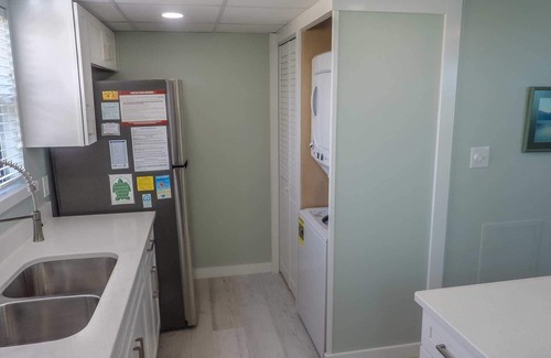 The main level welcomes you with an inviting open-concept layout, featuring a newly remodeled kitchen equipped with cookware essentials to prepare your favorite meals. Relax in the spacious living area, complete with ample seating and stay connected with high-speed WiFi - a seamless blend of convenience and relaxation. The mail level includes a full bathroom with a tub/shower combo and in-unit washer and dryer ensures ease for guests.
