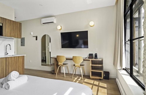 Arcadia Hotel Boutique - Top Floor Room has 1 Bedroom , 1 Bathroom, and max occupancy of 2 people. The minimum rental for this property is 1 nights, but this can change depending on the season you plan on staying. Previous guests have given good rated it, and VRBO labeled it a top-rated Hotel because of the excellent services rendered by the owner or manager of this Hotel, and has consistently provided great experiences for their guests. Most families or guests that use it recommend it to their friends and some of them are repeat guests. Hotel has a friendly neighborhood, and the Old Montreal has interesting places to visit. If you want to learn more about the Hotel in Old Montreal, such as places to visit and things to do nearby, you can check below to learn more.