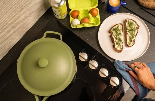 The Grand King Suite has a generous living room, custom dining table and banquette with full kitchen outfitted with everything you need. The corner king bedroom is light-filled and airy with the adjacent spa-like bathroom featuring a rain shower and bath amenities by Aesop.