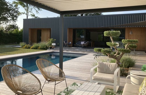 Architect's house with heated pool and spa 10 minutes from the Landes beaches. | House in Tosse