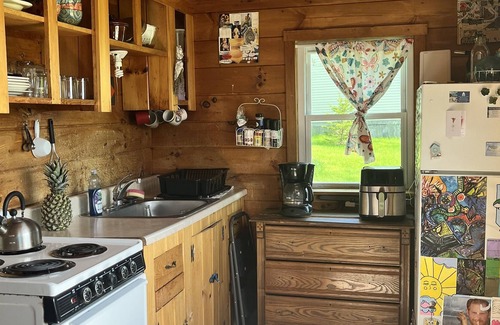 One bedroom, one bathroom with shower and tub. Small kitchen with refrigerator, air fryer, coffee maker, oven, utensils, plates, Bowles, skillets, pots, and cookie sheets. Dining area. Mountain and Valley views from front porch and bedroom windows. Short drive from downtown Farmington, a waterfall, and sugarloaf mountain. WiFi and TV. Free parking on site.