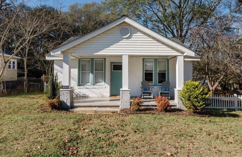 If you’re coming to Greenville as a small family or group of friends, this one’s for you! The home has two bedrooms with queen beds and luxury linens. The two full bathrooms make getting ready a breeze. If you’re bringing children, the fenced backyard makes playing carefree.