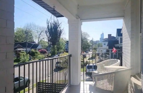 An elegantly furnished space that mirrors the charm of Oriental style. This opens up to a stunning patio and front yard, bordered by tall shrubs and featuring a large seating area for gatherings. Home has a deck with another outdoor seating area. Close to the City center and breweries, food halls, restaurants and bars.. Includes Google Fiber, full kitchen, full bath. This home offers 1 queen bed and 1 full bed; full bed located in converted living room. Unit is inside a quadruplex building.