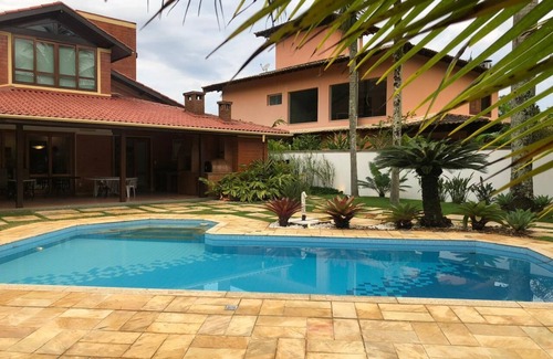 House in condominium of high standard - Domingas Dias - approximately 150 meters from the beach Sundays days. Rustic style / caiçara, fully decorated with quality furniture and equipped. It has 270 mts2 in land with 650mts. Pool, landscaped garden, 4 bedrooms, two of which are suites, living and dining room, tv room on upper mezzanine. Gourmet balcony with barbecue and pizza oven. Vacancy for 4 cars. Bright and airy house. Super functional and practical. Without taking the car from the garage, access by foot to two beaches with the front of the house to Domingas Dias beach and the back of the house access to Praia do Lázaro.