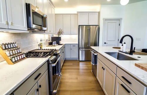 Flow is a 4-bedroom, 3-bath home designed with intention — a place where art, entertainment, and comfort of "mi casa es su casa" move seamlessly together with the elevated experience of a boutique villa. Whether you're here to relax, recharge, or explore the Colorado Front Range, we’ve got you covered with a home theater set up, designer furnitures, full coffee bar, full kitchen, digital arcade space with sim racing, and artfully styled interiors.