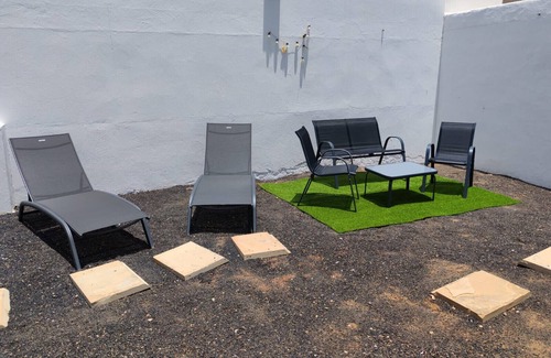 ### Welcome to Our Cozy and Spacious Holiday Home!This charming house is the perfect place to enjoy an unforgettable stay in Puerto del Carmen. With all modern amenities and a privileged location just 500 meters from Playa Grande and the lively Avenida de las Playas, you'll be just steps away from bars, restaurants, and shops.#### Amenities and Services- **High-speed fiber optic Wi-Fi connection**, ideal for remote work.- **Smart TV with Netflix access** for your leisure moments.- **Fully equipped kitchen**, including a 4-burner stove, perfect for preparing delicious homemade meals, kitchenware, capsule coffee maker, kettle, and microwave.- **High-quality bed linen and bath towels** for your comfort (one set of towels per person provided).- **Washing machine and hairdryer** for added convenience during your stay.#### Relaxation Spaces- **Private garden on the ground floor** with loungers and tables, an oasis of tranquility to enjoy the sun and fresh air.- **Enclosed terrace with glass windows**, equipped with a comfortable sofa bed, perfect for relaxing at any time of day.#### Bedrooms- **Two bedrooms**: one with a double bed and the other with two separate beds, both with spacious built-in wardrobes to store all your belongings.#### Extras- **Independent entrance** for greater privacy.- **Very quiet area** that guarantees a restful sleep.- **Pets allowed upon request**, because we know they're part of the family.- **Free public parking** near the house.Come and discover this wonderful corner in Puerto del Carmen, where modern comfort meets the serenity of nature and the proximity to the sea. We await you with open arms so you can enjoy an unforgettable stay!