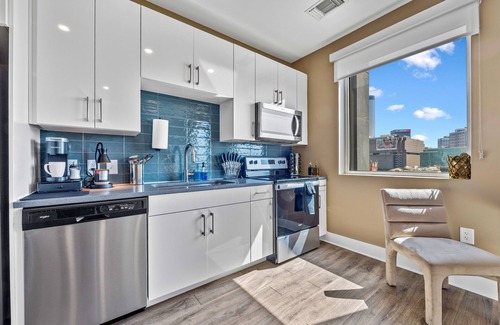 Experience breathtaking views from your window, showcasing the vibrant cityscape, including the World of Coca-Cola and the Georgia Aquarium. This prime location ensures you're at the center of it all, with top attractions and bustling nightlife just steps away, yet it provides a tranquil retreat high above the city's hustle and bustle. Due to this location being a corporate rental, a renter's agreement & security hold secures your premier experience at this location.