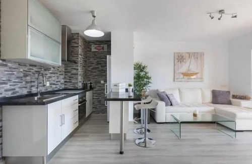 About the accommodation, no expense has been spared in its set-up. It is a very comfortable space and where absolutely everything is adapted to the highest quality standards. From the furniture, decoration and interior design to the equipment, they have been taken care of down to the last detail.The apartment is in a very quiet residential complex with well-kept and well-cared facilities. The community has two private saltwater pools located at two different levels from the street. One of them is interior, located in the center of the complex, while the other is open to the sea and the maritime avenue.