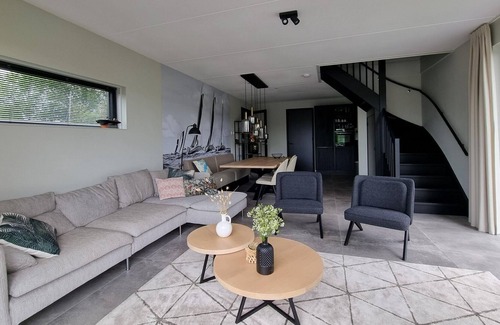 This luxury villa with its own jetty in the Frisian town of Balk is very suitable for holidays with the family. From the villa you have a direct connection to the Frisian Slotermeer. The water villa has a spacious living room with a comfortable seating area, a smart TV and a spacious dining table. The furnishings are very modern. The villa has a downstairs bedroom with an ensuite bathroom. Upstairs there are 3 bedrooms, 1 with an ensuite bathroom and a separate bathroom. So a lot of luxury and privacy. Balk, located in the Frisian Lake District, is characterized by its historic center located on the Luts River, part of the Eleven Cities Route. You can shop extensively along the canal or sit at one of the cozy terraces. The unique villages along the Elfstedentocht route are also definitely worth a visit. The open kitchen is part of the living room and is equipped with luxury appliances. Through the French doors in the living room you can easily reach the garden with a lovely terrace on the water.