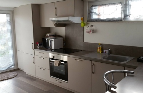 vacuum cleaner, all the necessary crockery, linen provided, bright housing large French windows overlooking garden (garden furniture and swing) convertible corner living room (sleeping 140 x 190 with extra charge over 2 people) flat screen LED TV , nice bathroom, large shower, toilet, cabinet with drawers (hair dryer sponges etc in drawers) under sink, Parking on property (garage on request with suppl.) broadband access