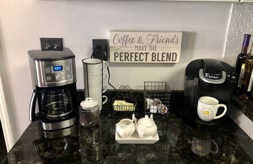 The kitchen is fully equipped with stainless steel appliances, coffee bar with a Keurig and a drip coffee maker and a breakfast nook with seating for 4!