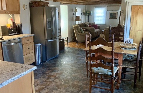 This completely renovated two story cottage has 4 rooms. It features original wide "pumpkin" pine floor boards, exposed beams and a narrow staircase, yet has all the modern amenities. The living room, eat in kitchen, 1/2 bath and laundry with washer and dryer are on the first floor. On the second floor are the master bedroom with a queen bed and the second bedroom with two twin beds plus a full bath. This cozy home comfortably sleeps 4. The brand new kitchen has a stainless steel stove, full sized refrigerator, and dishwasher. The house is fully air conditioned. There is a 42" flat screen TV, with cable and wifi. All bed linens and towels are provided as well as all cooking and eating utensils, coffee, tea, sugar, cream and salt and pepper. There are two+ parking spaces.