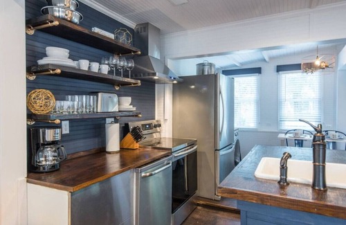 Escape to the charming coastal town of Folly Beach and stay in this charming 1940's cottage. Recently renovated, this home offers a perfect blend of modern amenities and vintage charm. Located just one block from the beach, you can easily spend your days soaking up the sun, building sandcastles, and searching for seashells.
