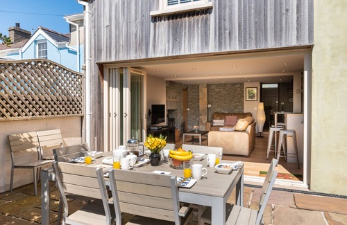 A fabulous recently refurbished Georgian property in the heart of the vibrant and picturesque seaside town of Aberaeron, with an abundance of takeaways, shops, pubs and restaurants just round the corner. This beautiful property really has that holiday feel with downstairs being attractively all open plan and very spacious and benefits from bi-folding doors that fully opens out onto the patio from the lounge for even more space and a fantastic inside outside flow for your BBQ afternoons. It's an ideal place for a sociable group and in a great location. Aberaeron is full of colourful buildings and you can really appreciate their beauty when on a boat that you can catch from the harbour to see bottlenose dolphins. The spectacular Llanerchaeron estate with its gorgeous Georgian villa, farmyard, walled garden and lake is worth a visit and outside of Aberaeron, take a drive to New Quay and Aberystwyth, both places offering stunning views of Cardigan Bay.