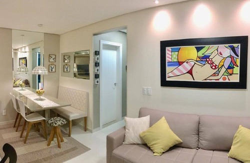 Fit decorated 60m from the beach, with 65m². 2 bedrooms, 2 bathrooms, barbecue, laundry area, living room and kitchen, with air conditioning in the rooms, cable TV and internet. Vacancy for 1 car (covered and private). Home box with 03 beach chairs, frescobol, parasol, volleyball, playing cards and dominoes. Leisure and hiking options: Lagoinha do Leste; Saquinho beach; Cachoeira Solidão; Campeche Island; Bike tours; Boat ride; Surf; Stand-up paddle; Yoga; Still, handicrafts, Bars, etc.