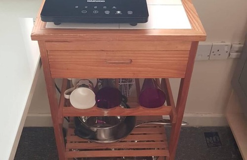 - separate kitchenette with oven, fridge, coffee maker and induction hob.