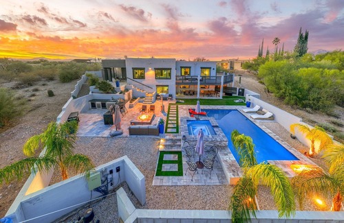 Enjoy ultimate relaxation at Desert Mountain Dreamscape! Located in the beautiful Foothills of Tucson, this 3 bedroom / 2.5 bathroom home offers comfort and serenity to all. Whether you want to take in the 365 degree views (mountains, city lights, sunsets), utilize the game room (Xbox Series X w/ game pass, foosball, ping pong, built in bar), or unwind in the resort style backyard (heated pool, lagoon, waterfall jacuzzi, outdoor kitchen w/ wine fridge and keg, fire pit) this house offers it all! Desert Mountain Dreamscape can sleep up to 8 guests and is pet friendly!