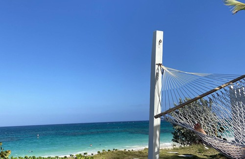 The guest house is called SPINNEYMINI and it is located on the back deck, steps to the beach. It is on the same property as the main house and can accommodate an additional two (2) guests. It has 1 bedroom and 1 bathroom as well as its own sitting area and coffee bar equipped with a mini fridge, bar sink, french press, kettle and teapot. Spinneymini has unbeatable ocean views, fresh ocean breezes and full access to the back deck with its outdoor shower, gazebo, and hammock. This guest house would be perfect for the inlaws, or for guests who would like a little extra privacy. Sneak up there for an afternoon nap or use it as a private yoga studio during your stay. If you don’t feel like chatting with the passers-by, the back deck is the perfect place to sip your morning coffee and enjoy the gorgeous Bahamas sunrise.