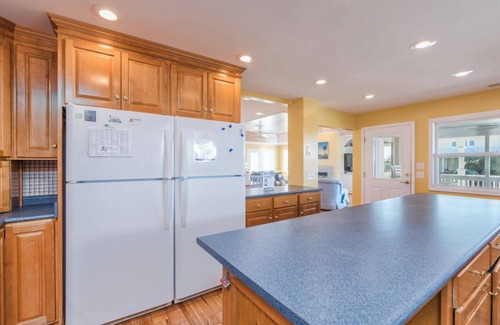 Store snacks in the game room s kitchenette and practice your pool shot on the billiards table. There is also a ping-pong table in the garage for extra fun! Get out and enjoy the sunshine on the wrap-around deck and settle into a chair to enjoy the ocean breeze. A private dock is available for crabbing and fishing and the beach is just across the street.