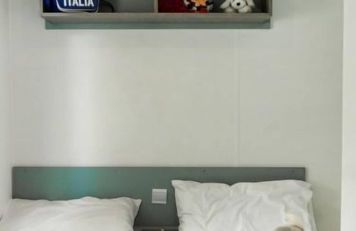 "Happy Comfort", 3-room mobile home 25 m2. Object suitable for 4 adults + 1 child. Practical furnishings: living/sleeping room with 1 sleeping facility, dining table, electric heating and air conditioning. 1 room with 1 french bed (140 cm, length 190 cm). 1 room with 2 beds (70 cm, length 190 cm). Open kitchen (4 hot plates). Shower/WC. Air-conditioning (extra). Terrace partly roofed. Terrace furniture, electric barbecue (portable), deck chairs (2). Facilities: mosquito net. Reserved parking (1 car). Please note: non-smokers only.