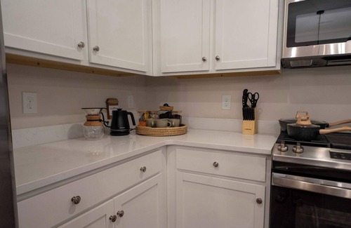The home is made for gathering, cooking, and hanging out, with a spacious kitchen, dining for eight, and a cozy living room with a 65” 4K TV. Whether you're staying for a few days, a few weeks, or a few months, you'll have everything you need to feel right at home.