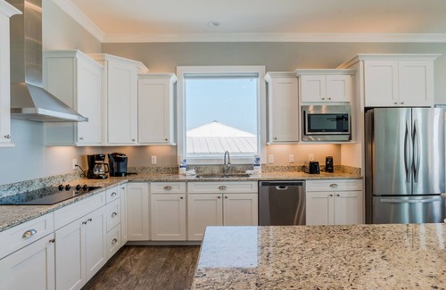 Inside, the bright and calming ocean-themed interior of this home is punctuated with unbelievably luxuriant extras. The fully-equipped gourmet kitchen features granite countertops, double ovens and dishwashers, and a pantry with plentiful space. The laundry room with washer, dryer, extra full-sized refrigerator and ice maker is located off the kitchen. The kitchen, dining, and living areas encompass one wide open space with unbeatable views from the wall-to-wall windows! The main floor also features extra sleeping accommodations with a twin-sized sleeping nook in the dining area.