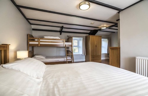The stone built 17th century barn is full of character and quirkiness which has not been compromised during its extensive renovation . From its foot thick stone walls to its beams and stable doors it is one of a kind. The large open plan kitchen with range cooker and large acacia dining table and chairs is a great space for entertaining friends and family. The pretty lounge is a great place to relax with loved ones and in winter sitting round the log fire is a great way to end the day . There is plenty to do outside with the hot tub and extensive play area and there are plenty of beautiful places to visit close by.