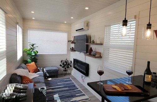 Welcome to a relaxing stay in Texas Wine Country! Barossa Valley Station captures the bold essence of Australia’s Barossa Valley, blending rustic charm with modern comfort. With a plush queen bed, a spotless bathroom, and a modern kitchenette, it has everything you need for a restful stay. Whether you’re here for a romantic retreat or a peaceful getaway, this space is designed for ultimate relaxation. This beautifully crafted 1-bedroom luxury container home is designed to blend comfort, charm, and serenity.