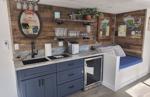 New for 2025: A newly added wet bar, living, decking and game/entertainment space below first level deck.