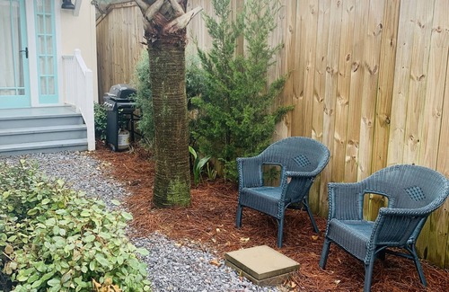 If you are looking for nice getaway with a little privacy, BayDream Believer is the place to be. This property is on a private lane with only 2 houses and is a short bike ride or walk to the beach and Downtown. This 2 bedroom 2 bath renovated home has a private master bath and bedroom. A separate locked entry door leads to the 2nd bedroom or you can enter it through the hallway. Each bedroom has a queen bed. The living room has a 55" wifi TV and a beautiful sitting area . The kitchen and dining room will add to your comfort. Outdoor grill, beach chairs and bikes are provided.