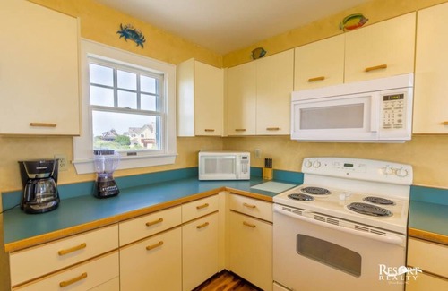 Traverse the coastal painted staircase to a bright and airy open-concept great room. Step up to the elevated seating area with a desk and plush chair to read a good book and catch a view of the sound. After grilling out, ring the dinner bell in the kitchen to gather friends and family together. This home offers a spacious outdoor shower and a large carport with entertaining space. Don't forget about the close proximity to the community park and less than a five-minute drive to the beach access. Member of the Village Beach Club! Village Beach Club membership amenities include Olympic sized Oceanfront community pool, tennis courts, snack bar with grill, and family activities. Bays Edge Retreat is a warm, relaxing home that your group will talk about for years to come.