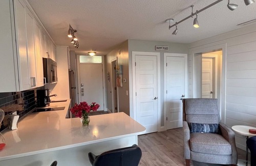 Clean, bright & stylish. This condo features 2 bedrooms, one with a king size bed and the other one with a bunk bed. The kitchen is fully stocked with everything you may need to cook a warm meal during your stay. It even includes a blender, waffle maker, air fryer and a griddle. There is a large flat screen TV with Netflix in the living room. The large patio can be accessed from the living room or the bedroom.