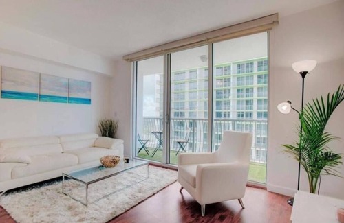 Great modern and spacious studio! Come and enjoy the sun in Miami with us - this modern studio is located centrally overlooking the bay, and within minutes of Wynwood, Design District and Brickell. About 10 min to the beach. Opposite the famous Bayshore park with walking, running and sports facilities. Queen bed, living area and a fully equipped kitchen & bathroom. The building has an updated pool and gym with dryers and washers and assigned parking.